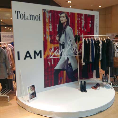 We at Lyhnia S.A., are proud to have constructed and printed the rotating, double sided, 3m high stand for Toi&Moi, along with the stickers of the “Toi&Moi” logo on the glass as can be seen in the fourth and fifth images.